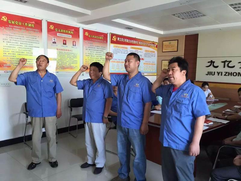 2015年7月1日:今天是中國(guó)***黨94歲的生日:洛陽(yáng)九億重工集團(tuán)有限公司黨支部為3名新黨員舉行入黨儀式:宣誓入黨誓詞;黨的事業(yè)后繼有人!