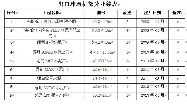 磨機(jī)部分業(yè)績(jī)表